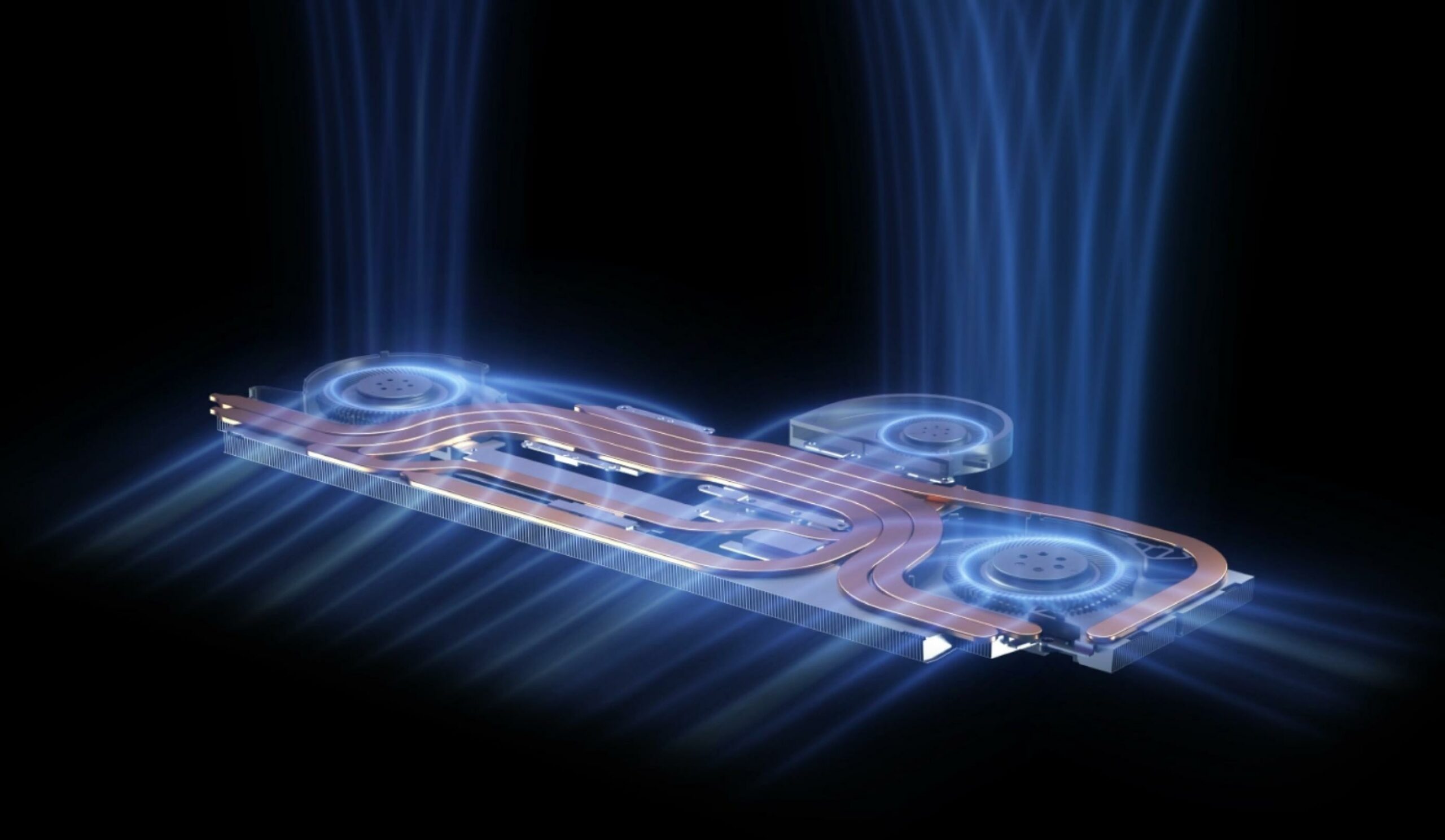 - 豪配散热计划:冰川散热架构3.0,3电扇5热管加全新风刃版冰翼鳍片规划,转轴处初次选用联排出风口,整机合计搭载330片薄至0.1mm的冰翼鳍片